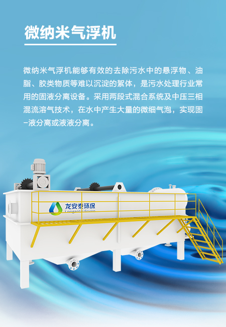 是一種基于微納米級氣泡的固液分離技術。該技術通過特定的設備和方法,在水中產生大量的微納米級氣泡。這些微納米氣泡具有很高的表面積體積比,可以更